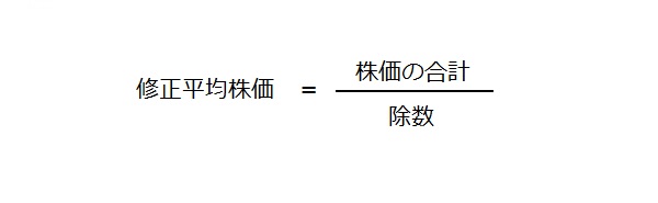 株価の合計を銘柄数で割るのではなく、除数によって、株式分割や増資といったコーポレートイベントや銘柄入替の影響を調整している点で「修正」平均株価と呼ばれる。値嵩株の影響を大きく受ける。